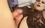 Nadat ze zijn lul heeft opgepompt laat ze zich door de oudere man neuken