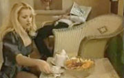 Oma pist een kopje vol en mastubeerd haar oude kut met een vibrator, vervolgens laat ze een geil stel de pis proeven.